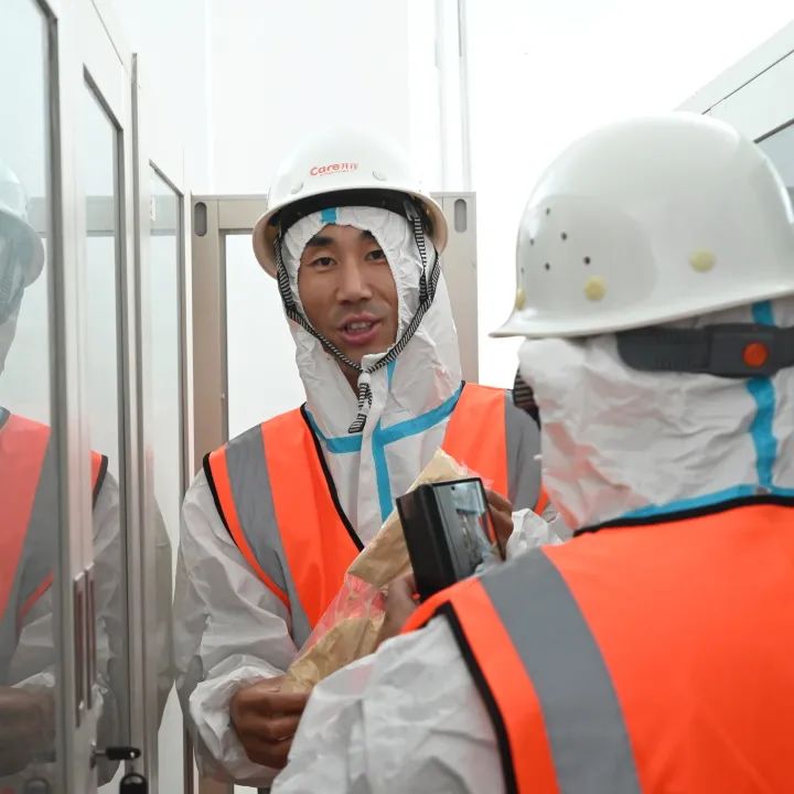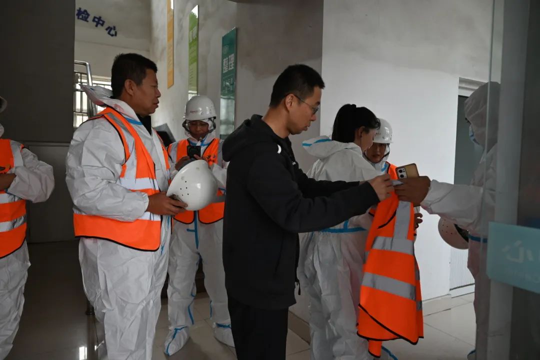 在稍事休息后,客户们做进入厂区参观前的准备,应集团生物安全防控以及入场参观要求,入场参观必须身着防护服,并做好安全防范措施。