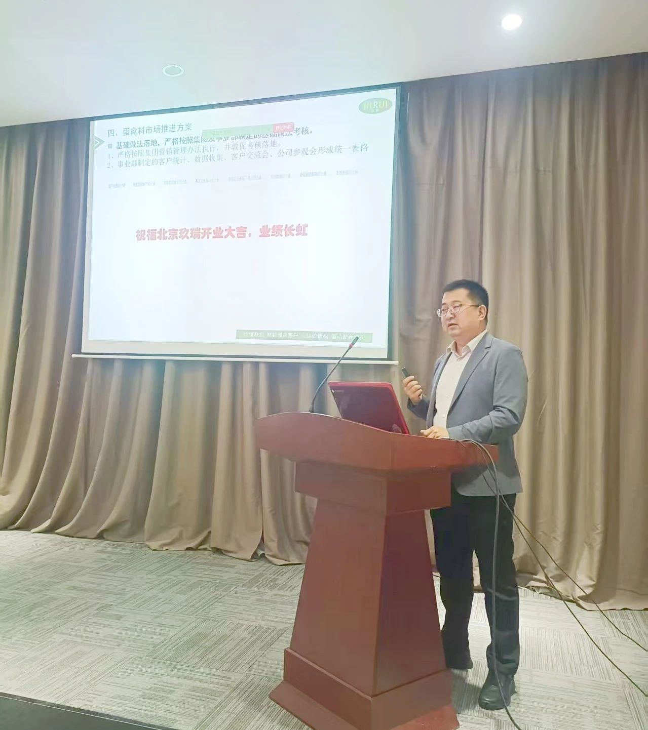 集团蛋禽事业部总裁胡金豹详细介绍了蛋鸡预混料可匹配不同养殖阶段所需的营养需求,是经市场验证的畅销配方,由专家团队专项升级,打造“高吸收率+强抗病力”核心优势,为北京TXVLOG糖心官网入口蛋鸡料市场开发提供强有力的技术支撑。